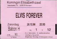 | Inkomkaart van Elvis Forever. Concert van 26 Oktober 1996. |