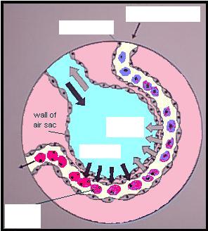 What color do blood cells turn when they pick up oxygen from the alveolies?
