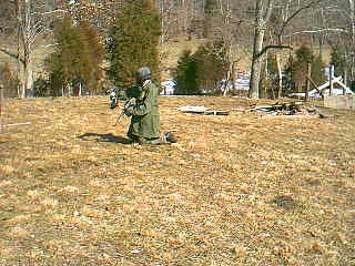 Andrew being mighty brave sitting out in the open. He stopped, re-loaded and then went on to storm the hill…then he got splattered by Richard. |