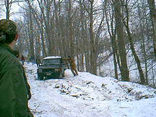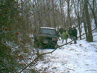 After the first game they decided to pull Ernie's Land Rover out of the ditch. |