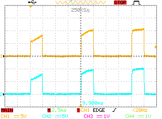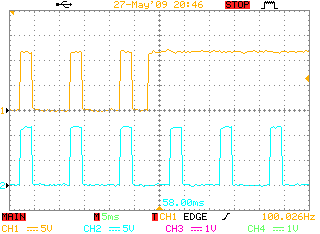 When the brake is applied one of the bulbs is switched over to 100% duty cycle. In the picture below the upper signal switches over to 100% duty cycle.