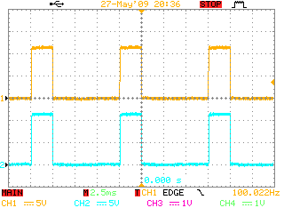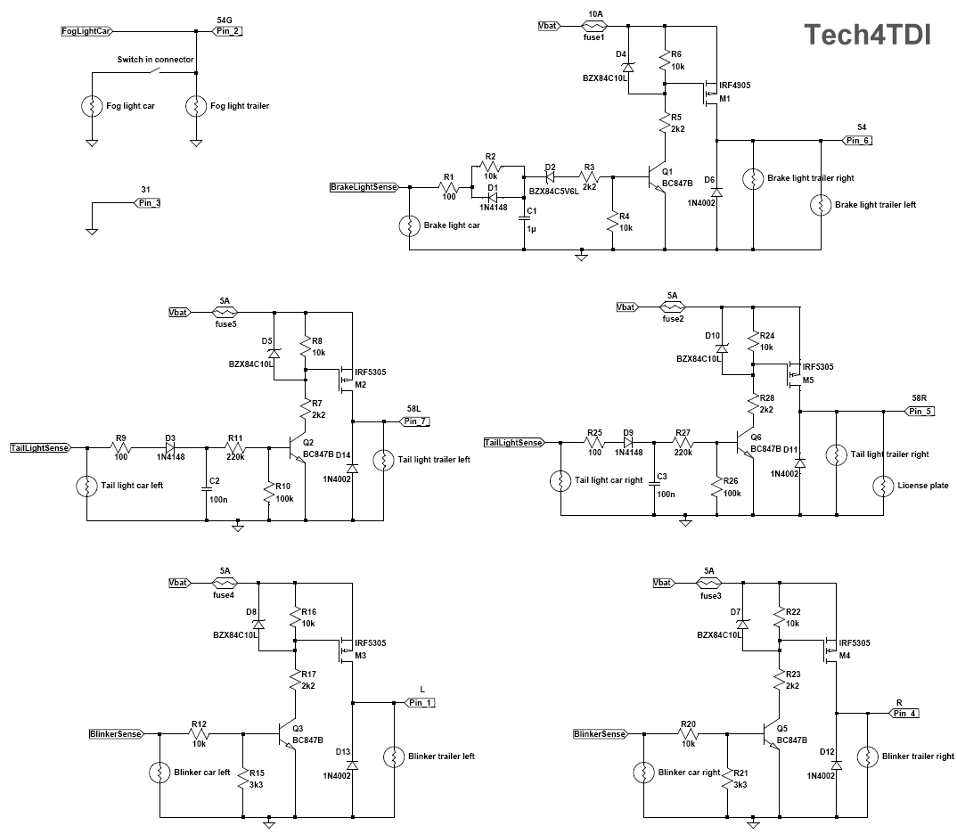 For the tail lights there are two bulbs on both sides. Both are driven by a 100Hz PWM signal with a 25% duty cycle.