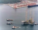 The Rowan Gorilla 2, in Halifax Harbour, Canada, under tow to Sable island, in 1998. |