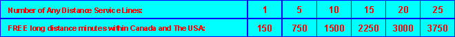 · Every month, your business will receive 150 FREE long distance minutes for every Any Distance Service line your business uses. These minutes can be used for calls across Canada and the United States