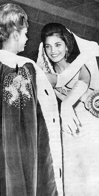 | Beautiful Ieda receives the Miss Rio Grande do Sul sash from Eva Arismendi, Miss Rio Grande do Sul 1963. The two fllowing steps were Brazil and the Universe. | ||||||||||||||||||||||||