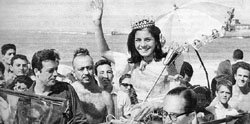 | Miss Brazil is greeted by Cariocas (natives of Rio) in Copacabana Beach one day after she was crowned Miss Brazil 63. | ||||||||||||||||||||||||