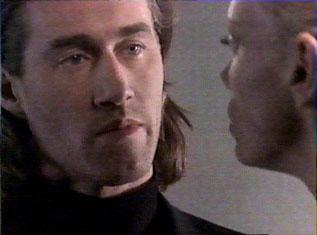 (M)'I've got to get out of here.' (N)'You'll never make it. They'll find you.' (M)'You said they'll kill me anyway. I've got nothing to lose.' (N)'I do.' |