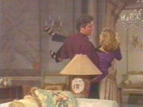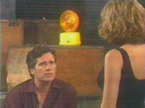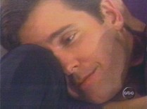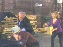 Dixie cried as she begged Tad to wake up. Then she got really worried that he was seriously hurt. (Damn, Palmer really pegged him good with the corner of that box. Ouch!) She started saying things like... "We've wasted so much time already..." Well, Mr. Martin wasn't unconscious anymore... not that he let her know! Can we say, cat that ate the canary? Check out this grin!