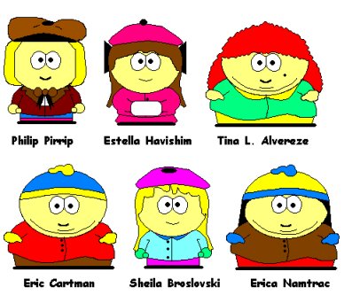 The Cast of "The Cartman's Old Girlfriends Club" The main ones at least. This was cool cuz I got to see Estella drawn by someone other than me for the first time.
