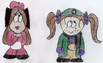 Best Buds. Estella Havisham and Erica Namtrac. I accidentally drew Estella too tall. Sorry. :-(