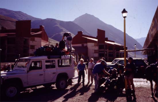 Once you arrive in Mendoza you will need to secure your Climbing Permit. This is done at the offices in "Parque San Martin" . They are situated about 50m from the parks main entrance. Go early to avoid waiting. From here you can start traveling to Plaza de Mulas. From here you will drive to either Hosteria los Penitentesor to Puente del Inca. Here you will spend the night and enter the park the following morning. The Hosteria owners drove us to the park entrance where the trek starts. At the entrance you have to check in with the park rangers where they will check your permits and issue you with a rubbish bag. |