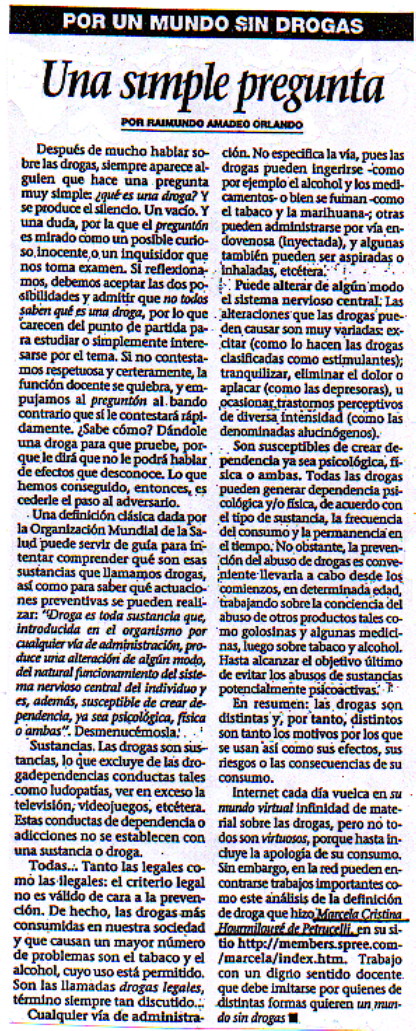 aparece alguien que hace una pregunta muy simple ¿que es una droga? Y se