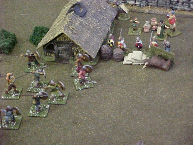 Duane forms a shield wall and attacks.