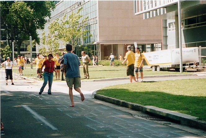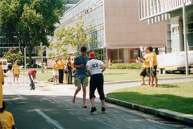 Description: Here you see Tym and a different Lisa trying to break the guiness record for the longest hopscotch board ever played on....