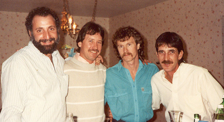 | New Years 1989 at the Sayres'. LtoR Steve Sayre, David Hanshaw, Dave Comer, Terry. |