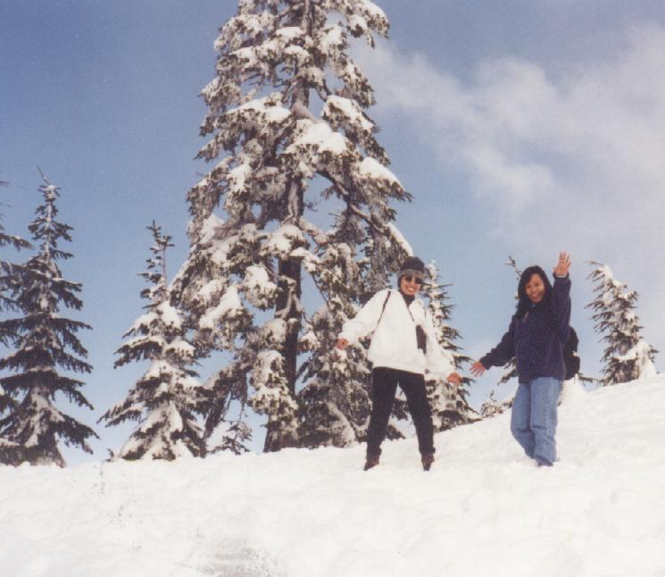 It was a beautiful warm and sunny day in Vancouver with the flowers blooming. But at the top of the North Shore Mountains there was still lots of snow. Here we are enjoying the snow at the top of Grouse Mountain in North Vancouver.