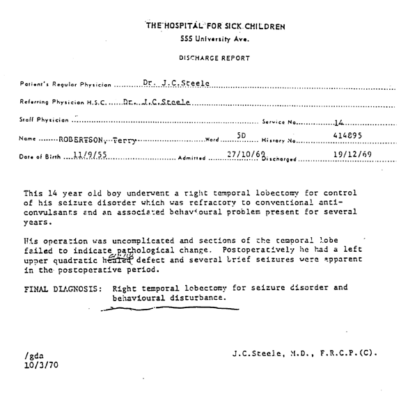 Evidence of Psychosurgery by Harold J. Hoffman at HSC