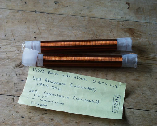 of 44AWG (42SWG) wire on a 4.2" by 0.6" former - a pair of