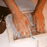 | Qui sotto alcune immagini dell'esperimento illustrato sulla rivista: l'esperienza di una giornata di studio nel novembre 2001 si è sommata alla consultazione attenta di alcuni siti internet. Per quel che ne sappiamo, non esiste un manuale che spieghi come far feltro in italiano. |