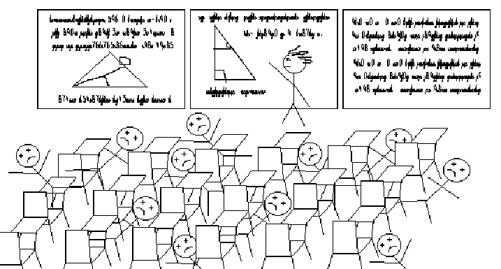 Bob and Ed discuss the ways of the world while strolling (or sitting) around the campus, drinking sodas and smoking cigarettes. Here, Bob expresses his opinion about some of Ed's ideasNo, he did not blame the Hollywood movie makers for all our ills in this regard. They were simply reacting to a social stigma which had grown out of many of the most recent scientific discoveries. Brilliant scientists, such as Albert Einstein and Niels Bohr, were seen as "typical," and if you were not one of them you would not be able to understand science. The people in Hollywood merely made it "common knowledge" that, "science is hard, and only the chosen few can understand it (so don't try)."