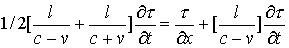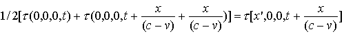 τ0(x0,y0,z0,t0) + τ2(x2,y2,z2,t2)] = τ1(x1,y1,z1,t1) (3.14)which is Equation 3.13 in its functional form. Noting that there is no motion in the y and z directions3 and plugging in the values for coordinates xn and tn (where the n's are the numbers 0, 1 and 2 for the specific measurements), we get the following coordinate transformation formula