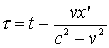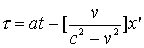 If we write new cartesian coordinates in the moving system as X, Y, Z, and τ, we see that we can find transformations between the moving and stationary systems for each of the coordinates. Applying certain boundary conditions (skip this phrase if you do not understand it, because it is not important to know what it means), Einstein arrived at the following set of transformations