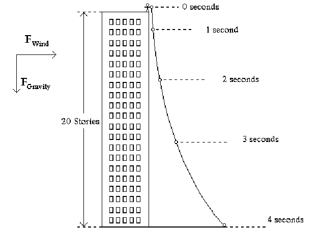 A ball dropped from a twenty-story building with gravity and wind forces.Suppose now, that while the ball is dropping, a cross-wind is blowing steadily along the side of the building and as a result of this wind, a force is applied to the ball in the form of the pressure from air molecules striking the ball on one side. The obvious result of this is that the ball now acquires mechanical energy and being accelerated in two directions at once: one from gravity and one from the wind. The net result is an increase in the overall energy of the ball before it hits the ground.