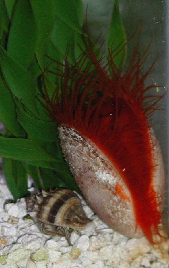 I have two Hermit Crabs in my 150 gallon marine aquarium. They are great for helping with any algae problem. There will be many more added to this aquarium.