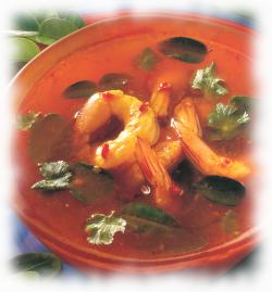 chili oil to the pot, then add shrimps. Boil until the shrimps are done