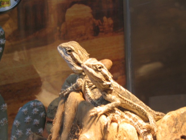 This is Justin climbing the rock wall on our cruise that we went on in December 2003. He made it to the top! This is Justin, 9 , doing a great imitation of a lion for the cruise circus. This is a picture of our other family members, Hoover and Godzilla. They are a pair of bearded dragons who are now about 16 inches long.