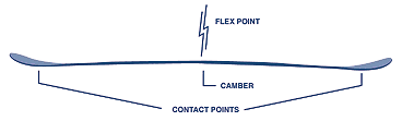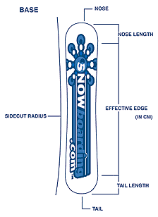 | Edges- The length of metal that run the length of the snowboard. Capped- Defines a snowboard where the top sheet wraps down over the top radius of the core all the way around the perimeter of the board. Base- Bottom side of the snowboard that touches the snow. Camber- The amount of space beneath the center of a snowboard when it lays on a flat surface and its weight rests on the tip and tail. Bevel- The degree of angle to which the edges of a snowboard are tuned. |