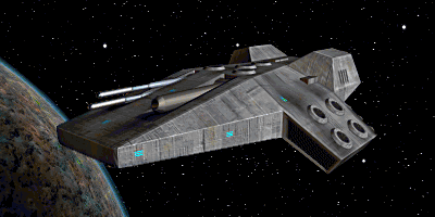 An older example of Corellian Engineering Corporation's CC-series of capital ships, the gravity well generatior equipped CC-7700 Frigate--approximately (acc. to my calculations) 737 metres long.