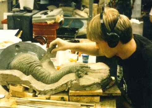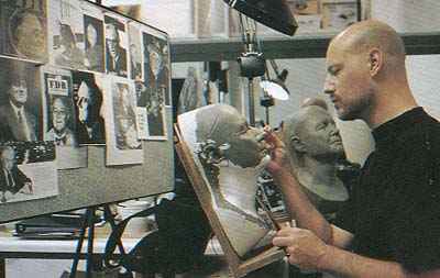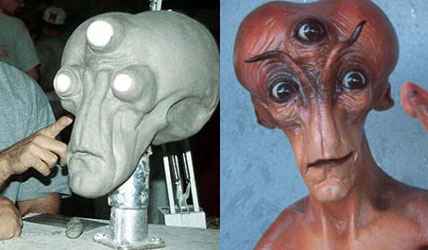 Abaixo observe as esferas na escultura representando os olhos de igual tamanho no boneco animatrônico.