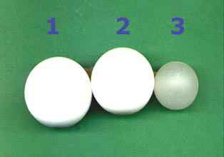 Uma alternativa para se conseguir facilmente olhos para esculturas de maior porte seria usar também outros objetos caseiros. Veja abaixo. A foto da esquerda mostra duas boas opções de olhos para escultura: ambos são frascos de desodorantes tipo "roller". Note que, basicamente, os tipos mais comuns são de dois tamanhos. A esfera que existe no menor tem 2,5 cm de diâmetro, que é o exato tamanho de um olho humano. Ou seja, este tipo serviria exatamente para serem olhos de esculturas de cabeças humanas. O segundo tipo tem 3,3 cm de diâmetro e serviria para esculpir figuras com olhos maiores. A vantagem em se usar este material é que você usa o desodorante e ainda consegue a bola de "brinde". Uma outra boa opção seria usar bolas de ping-pong ou tênis de mesa, que têm 3,5 cm de diâmetro. Você pode comprar as marcas mais baratas, como as que são encontradas em lojas tipo R$ 1,99, geralmente em pacote de seis bolas. Veja na foto à direita abaixo, as três sugestões: 1) bola de ping-pong; 2) bola de desodorante "roller" maior e 3) bola de desodorante "roller" menor.