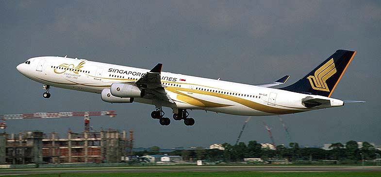 The Airbus A340-300E was ordered after Singapore Airlines cancelled a Letter of Intent to purchase the MD-11. Capable of operating nonstop year-round on the Singapore - Paris route, it is also operated on shorter routes to Bangkok and Jakarta. A newly-delivered 9V-SJN is seen here climbing into a stormy sky.