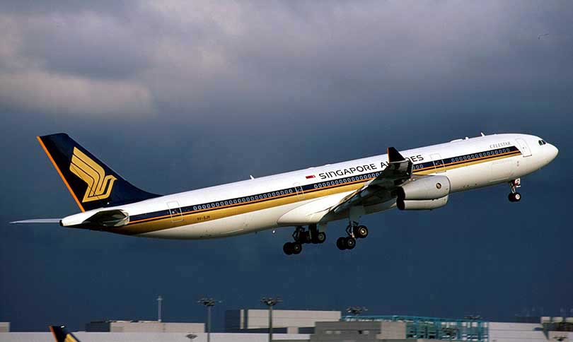 Not to be outdone by airliners from the Boeing stables, an Airbus A340-300E strutted out of the SIA hangar in the Golden Jubilee colours.
