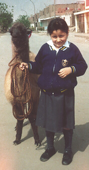Our niece, Gladys, with traditional transport. Nuestra sobrina Gladys con su llama preferido. Unsere Nichte Gladys mit traditionellem Beförderungsmittel. Ons nichtje Gladys met traditionele vervoermiddel. |