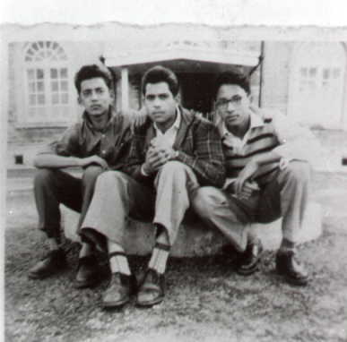 Johnny Kingsley, Dereck Reid and Rupu Dev Varma in front of the School office. This is