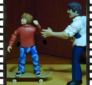 "You're lucky I just ate four sour cream burritos, kid!" But man, I'm still hungry. That skateboard's shaped like a Twinkie, wheels look like little powdered donuts...