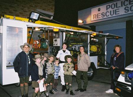 We went to see the Police Rescue Squad for Wollongong here, in this photo you can see Akela...............we're still holding talks with the police squad in order to have Akela taken away for questioning...