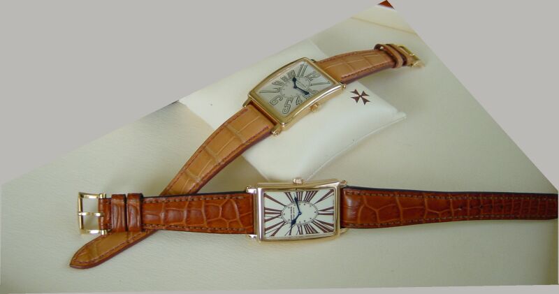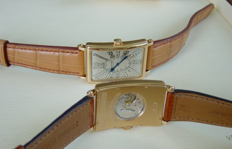 Rose gold case - Arabics is silvered dial with bright polished arabic markers; the romans is vitreous enamel.