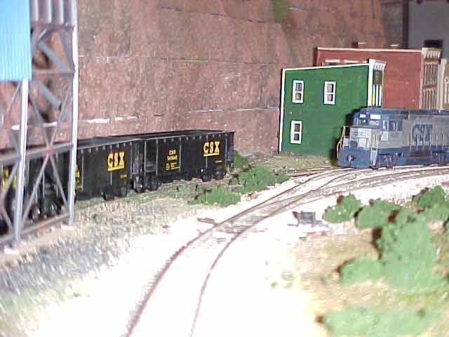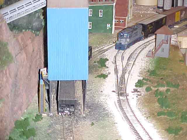 | This Spot on the Layout is a small town area with 1 industry served by rail. The coal loader sits on a siding that hold about 8 cars. The local from Dante services this area. Other business' include a restaurant/ Inn, a general store and a yet to be determined store. |