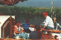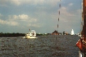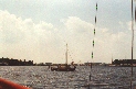 So zogen wir 1992 mit der " Friesa ", die meinem ehemaligen Segelverein PSV - Unna gehört, los. Da das Wetter nicht dem in Florida ähnelt, hatten wir hinter dem Mast eine Kuchenbude, und der Mensch am Ruder einen großen Regenschirm. Oft erreichten wir nicht das gewollte Ziel, da uns eine Schlechtwetterfront in einen anderen Hafen zwang. Dort sammelten wir neue Kräfte, ließen die Segel und Klamotten trocknen und segelten schließlich nach ein paar Stunden weiter.