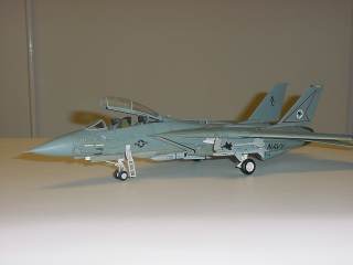Ez egy F-14A Tomcat. Bár azt hiszem, felesleges volt bemutatni. Ezt a gépet mindenki ismeri, ha máshonnan nem, hát a moziból. Ez a gép volt sokáig a US NAVY egyik legfélelmetesebb repülője. Még ma (30 év után!) is szolgálatban áll, igaz, jelentős korszerűsítések után. Jellegzetessége a változtatható nyilazású szárny,a kettős függőleges vezérsík és a gyönyörű forma.