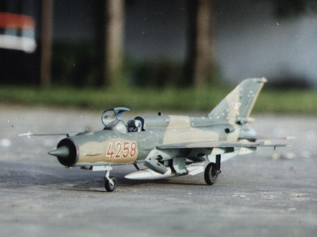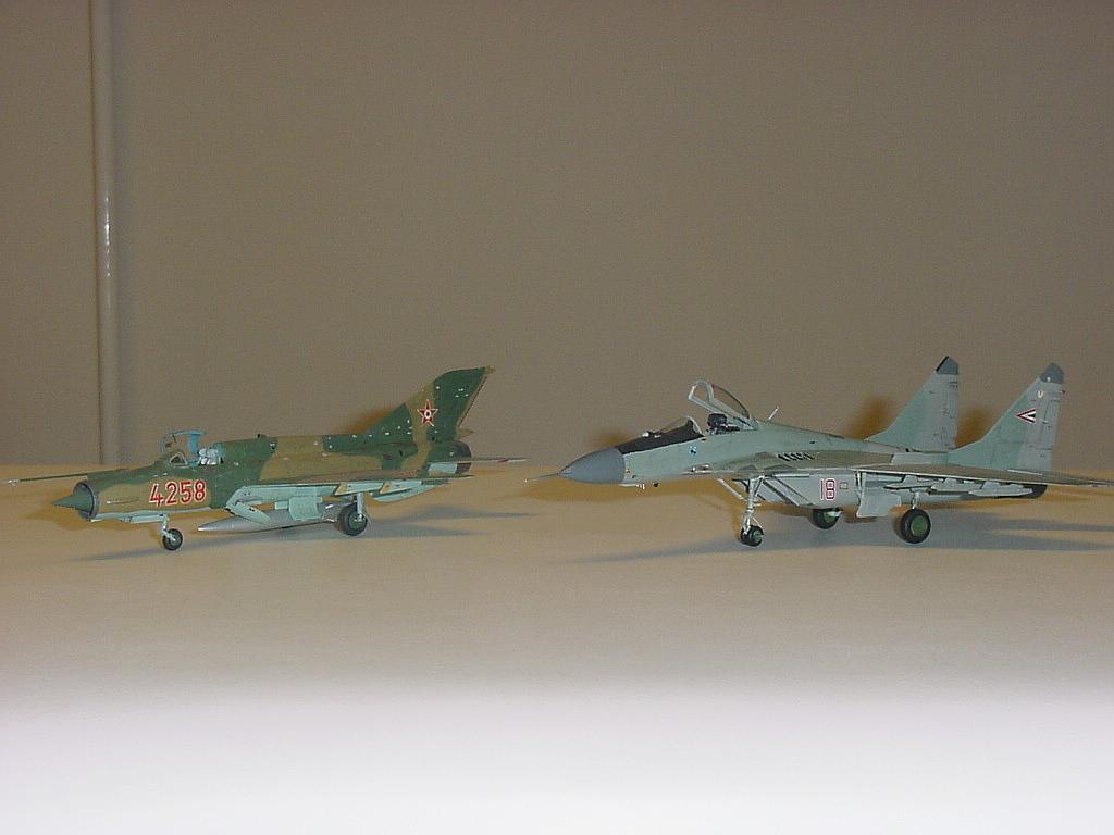 MiG-21MF. A Magyar Légierő színeiben még a régi, csillagos felségjellel. Hosszú ideig ez a típus (és a MiG-21bis) jelentette "a" vadászgépet a magyar légtérben. Ennek a tipusnak a Magyar Légierő nem kevesebb, mint 7 változatát használta (F-13, PF, MF, bis), ebből 3 kétüléses (U, USz, UM). A MiG-21-es jó példa arra, hogy egy alaptipusból mennyi mindent lehet "kihozni" a fejlesztések során. Mára már kiöregedtek, és selejtezésre kerültek. Helyüket a következőkben bemutatott MiG-29-es vette át.