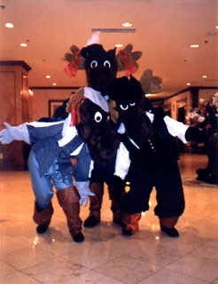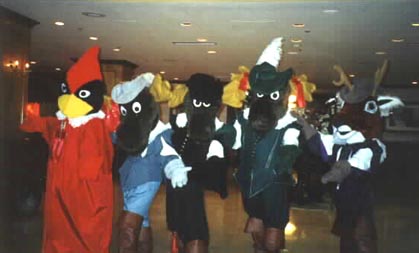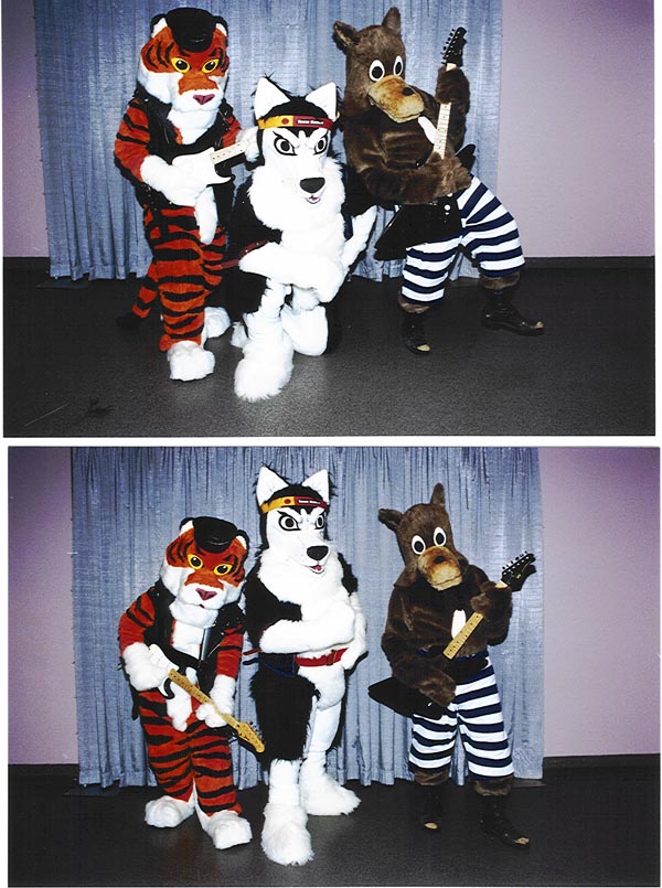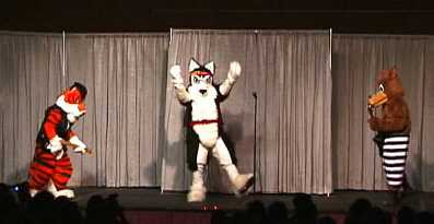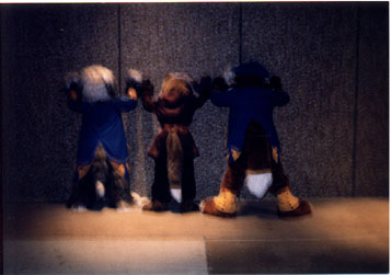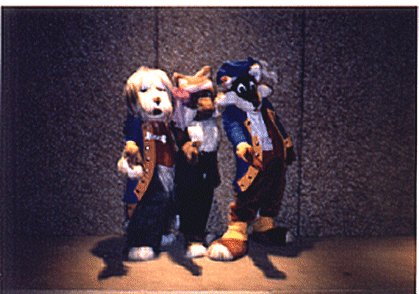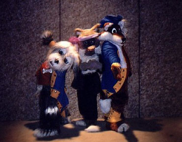 This fox in the center is my first Fursuit & I'm mostly happy with it, considering I inadvertantly completed it in two weeks, just before Worldcon in August 1998.