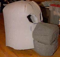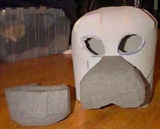 This head was constructed from acoustical 1" gray sheet foam and a 4"x8" block of gray foam, which was carved for the muzzle.