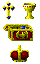 ![]() | Jewelled cross, Goblet, Treasure chest and Crown: Four different religious and/or treasure items collected by Hitler. Pick up 50 of these in any one level to get an extra life. |