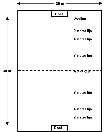 De afstand tussen de doellijnen bedraagt minimaal 20 meter en maximaal 30
