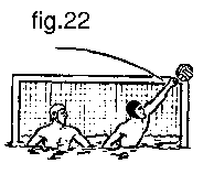 (c) het door een verdedigende speler spelen van de bal met gebalde vuist (fig. 22);